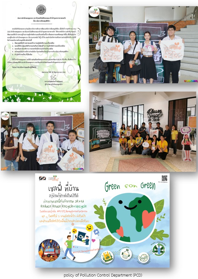 KMITL have set the green procurement with outsourcing service suppliers followed by a policy of Pollution Control Department (PCD), Ministry of Natural Resources and Environment. This policy was established for controlling the quality of their equipment to be an environmentally friendly product, with rules and punishments for companies about contract breaching.